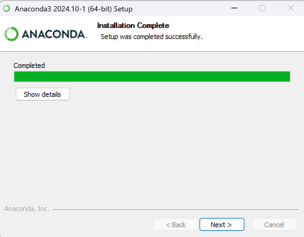 이것으로 파이썬 배포판인 Anaconda가 설치 완료됨.