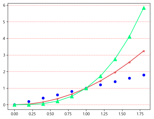 plt.grid(axis = "y", color = "red", alpha = 0.5, linestyle = "--") # y축만 격자 설정