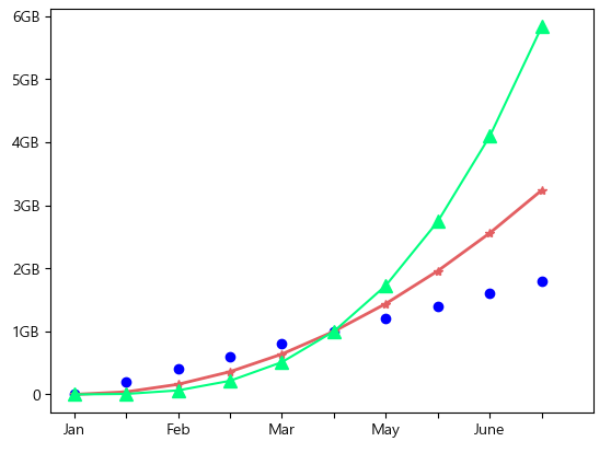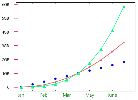 plt.yticks(np.arange(0, 7), ("0", "1GB", "2GB", "3GB", "4GB", "5GB", "6GB"))