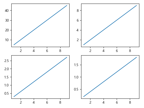 - plt.subplot(nrow, ncol, pos)줄, 칸, 위치