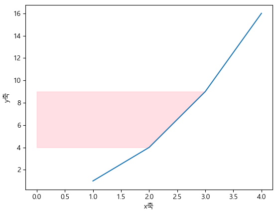 plt.fill_betweenx(y[1:3], x[1:3], alpha = 0.5, color = "pink") # alpha: 투명도 설정