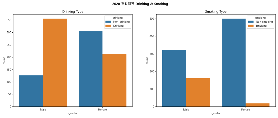 fig.suptitle("2020 건강검진 Drinking & Smoking", fontweight = "bold")