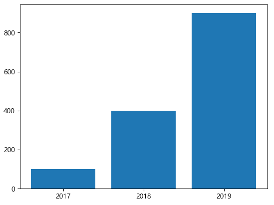 # plt.xticks(x, years) ->tick_label = years로 대체