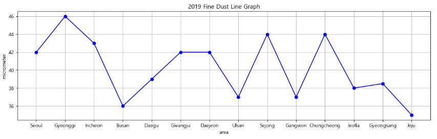 - 2019년도 미세먼지 선그래프 그리기