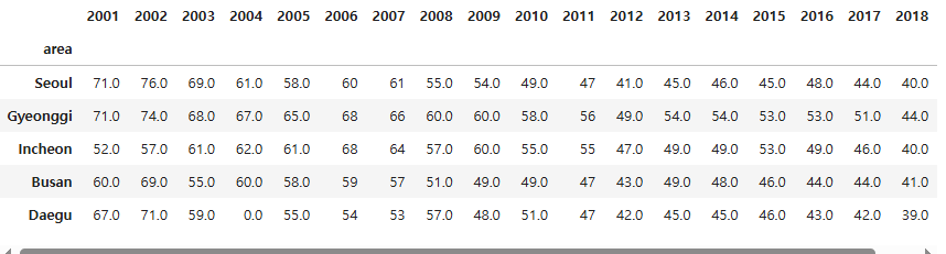 data = pd.read_excel("./data/fine_dust.xlsx", index_col = "area")