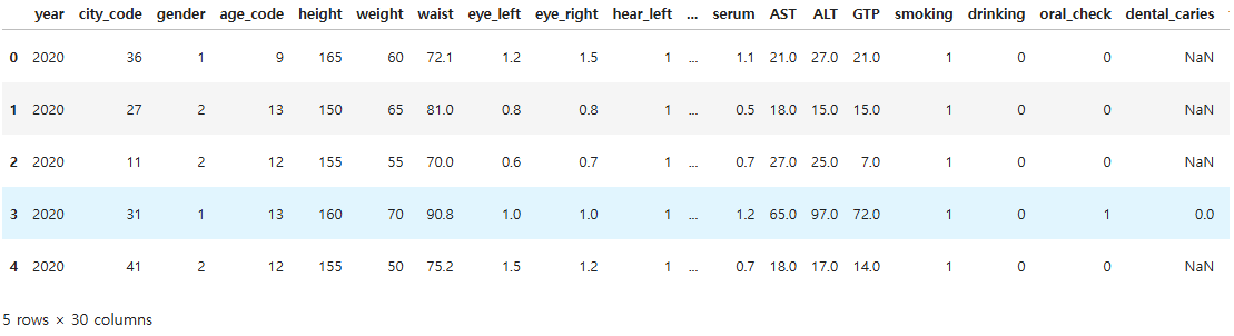 female_data = health.loc[health["gender"] == "Female", ["gender", "weight", "waist", "drinking", "smoking"]]
