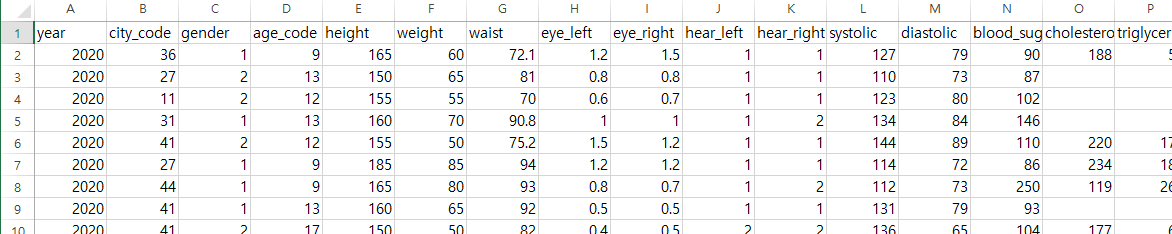 건강검진 데이터 count 그래프