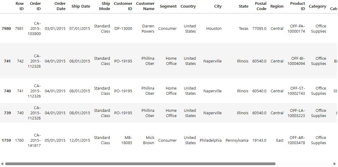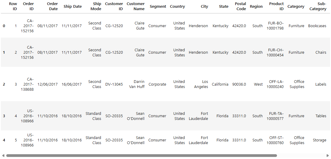 - 일자별 고객들의 제품 판매 정보가 기록되어 있음