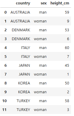 df3 = df3.groupby(["country", "sex"]).count().reset_index()