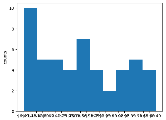 plt.ylabel("counts")