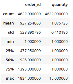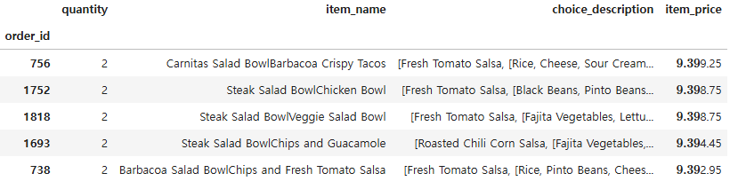 Index(['order_id', 'quantity', 'item_name', 'choice_description',