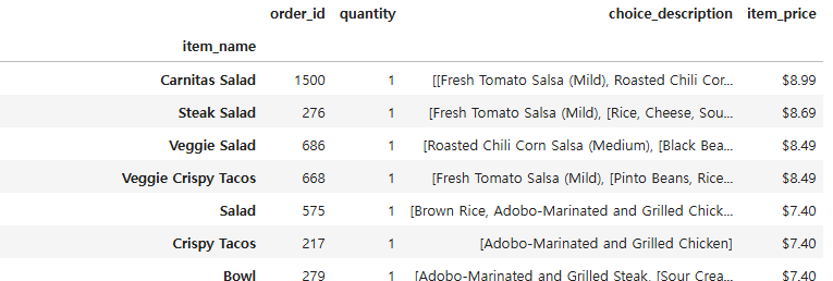 item_price = one_item.groupby("item_name").min()