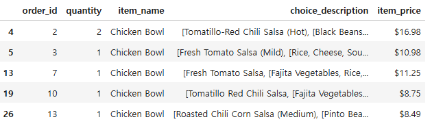 chicken_df = chipo[chipo["item_name"] == "Chicken Bowl"]