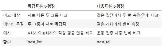 - 대응표본 t검정과 독립표본 t검정의 차이