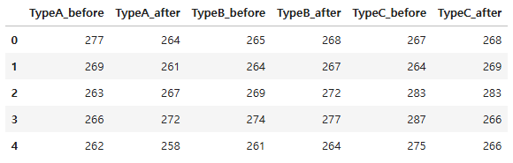 - TypeA_before와 TypeB_before 간에만 유의미한 차이가 있고, 나머지 조합에서는 통계적으로 유의미한 차이가 없음