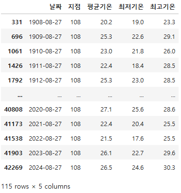 df.loc[df["날짜"].str[5:] == "08-27", :]