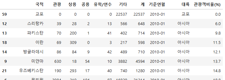 kto_201001_country = kto_201001[kto_201001["국적"].isin(continents_list) == False]