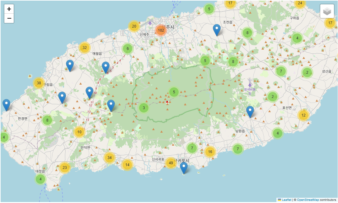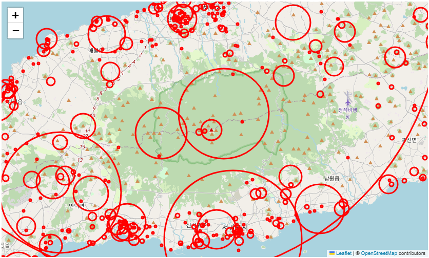 - 서클마커는 특정 지역에 너무 몰려있을 경우 개별 위치를 확인하기 어려움