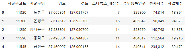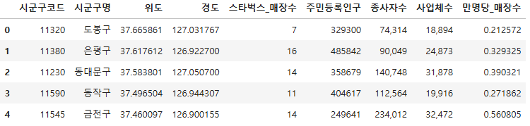 # 서울시 시군구 평균 스타벅스 매장 수 계산