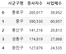 seoul_sgg["종사자수"] = seoul_sgg["종사자수"].str.replace(",", "").astype(int)