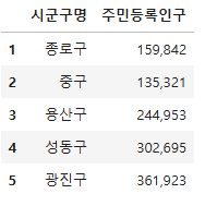 seoul_sgg["주민등록인구"] = seoul_sgg["주민등록인구"].str.replace(",", "").astype(int)