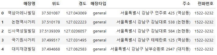 seoul_starbucks_df = pd.DataFrame(starbucks)