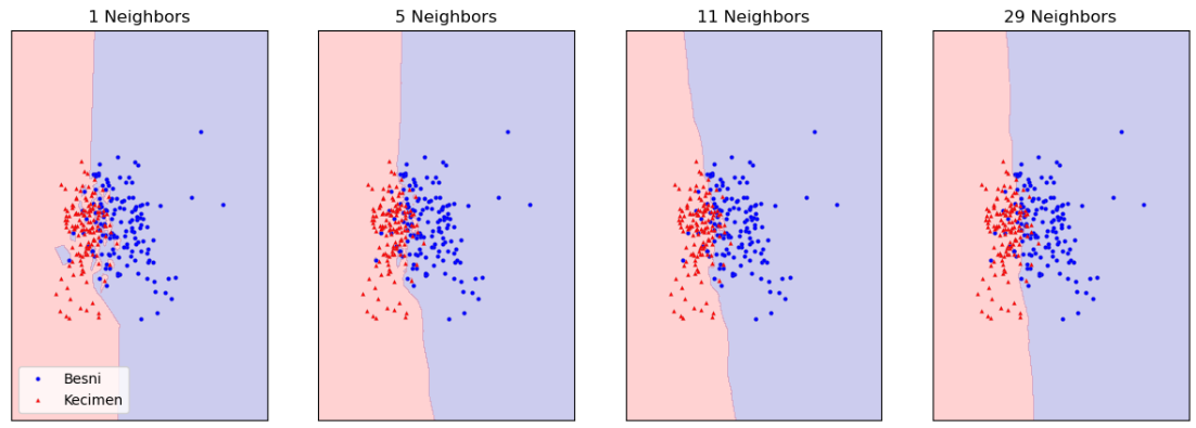 # 이웃 수 1, 5, 11, 29 에 따른 결정 경계 시각화