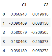 df_pca = pd.DataFrame(df_pca, columns = ["C1", "C2"])