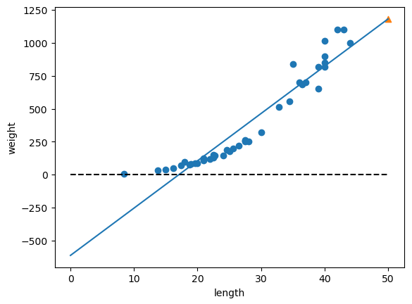 # 50cm 농어에 대한 예측