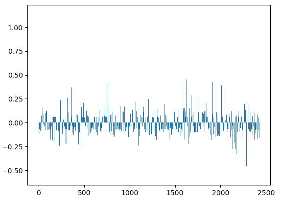 plt.bar(range(len(logi.coef_.flatten())), logi.coef_.flatten())