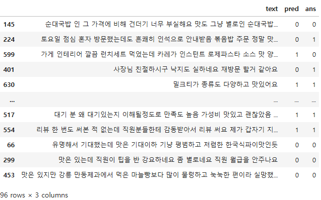 pd.DataFrame({"text" : x_test, "pred" : pred, "ans" : y_test})