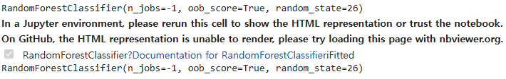 rf = RandomForestClassifier(oob_score = True, n_jobs = -1, random_state = 26)