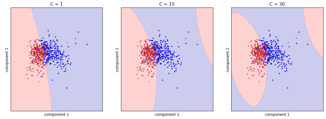 # C값 1, 15, 30에 따른 결정경계 시각화