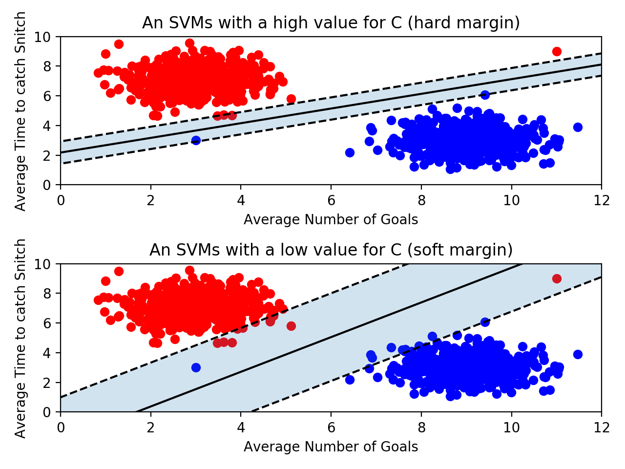 - C값을 높게 설정하면 이상치들이 있을 가능성을 낮게 잡아서 마진 오류를 적게 허용함