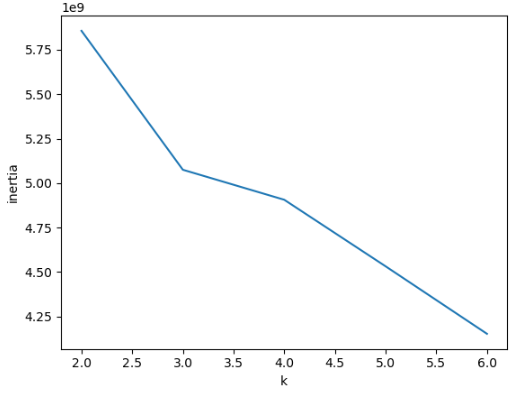 - 일반적으로 클러스터의 개수가 늘어나면 이너셔가 줄어듦