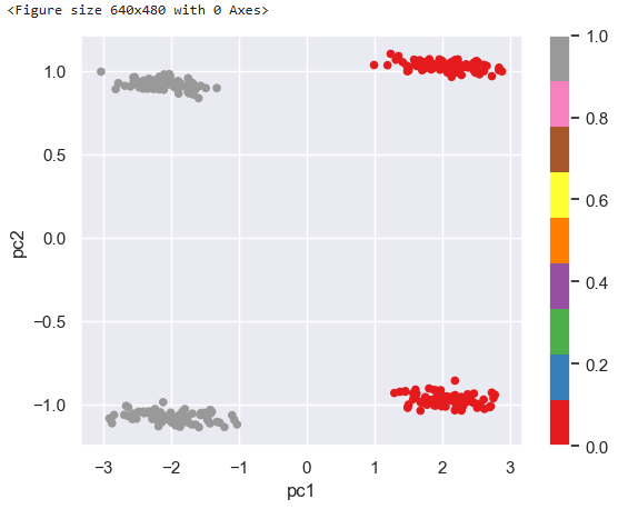 # 3개의 군집의 경우 뚜렷한 구분이 없음이 보이므로 2개의 군집임으로 결론