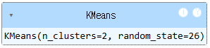 km2 = KMeans(n_clusters = 2, random_state = 26)