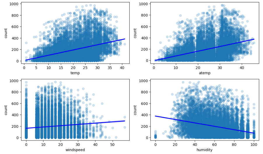 - weather : 날씨(1 : 맑음, 2 : 옅은 안개, 약간 흐림, 3 : 약간의 눈, 약간의 비와 천둥 번개, 흐림, 4: 폭우와 천둥 번개, 눈과 짙은 안개)