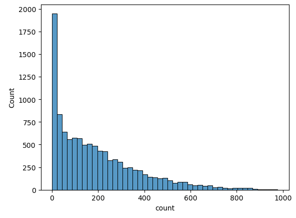 sns.histplot(train_df["count"])