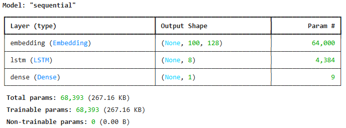 - 마지막 타임스텝의 은닉 상태만 출력하기 때문에 출력의 크기가 (None, 8)