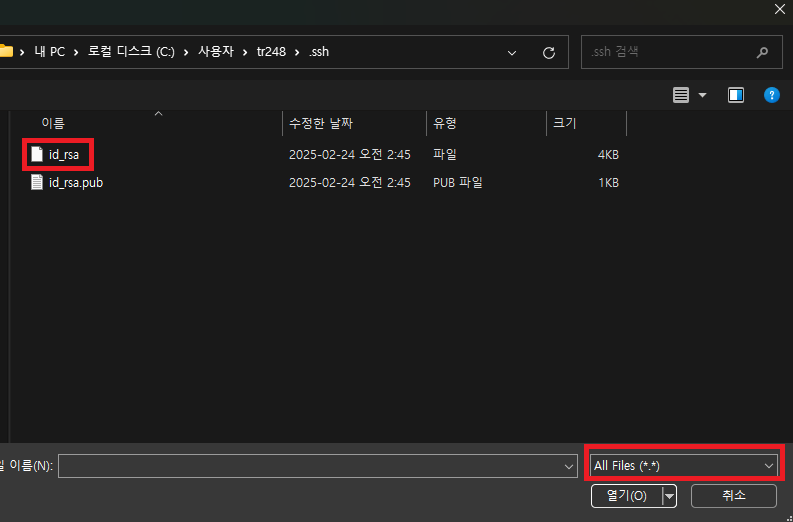 11. 「Load」를 클릭 후 SSH키가 있는 경로를 선택
