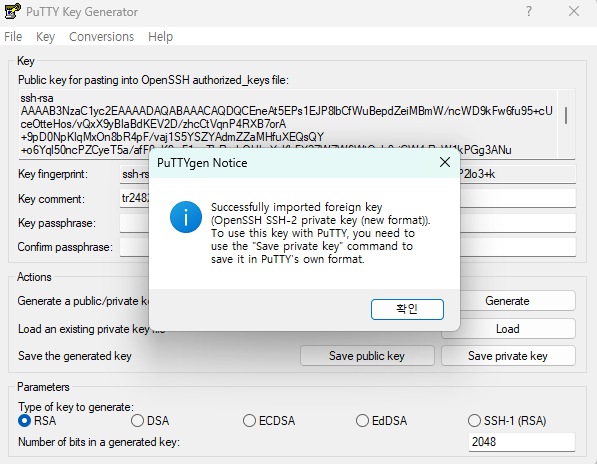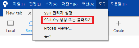 10. 「도구」> 「SSH Key 생성 또는 불러오기」