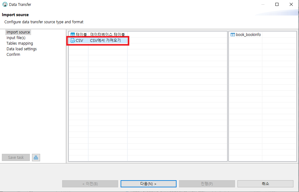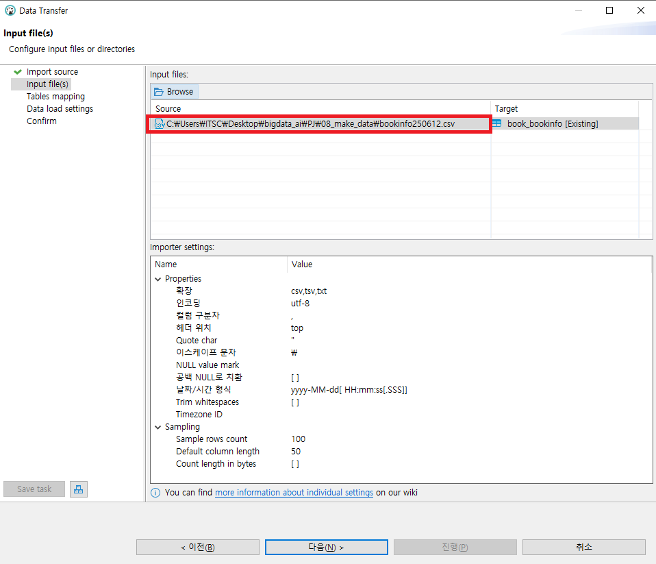 04. 01에서 작성한 csv파일을 선택 후 다음을 클릭