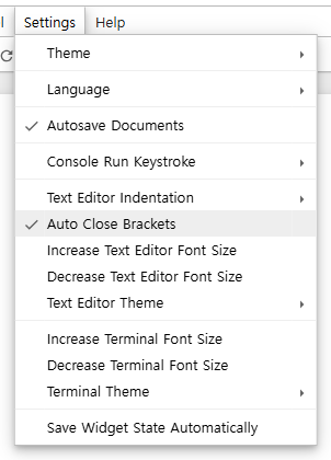 ※드래그한 글자가 지워지는 경우 settings>Auto Close Brackets에 체크