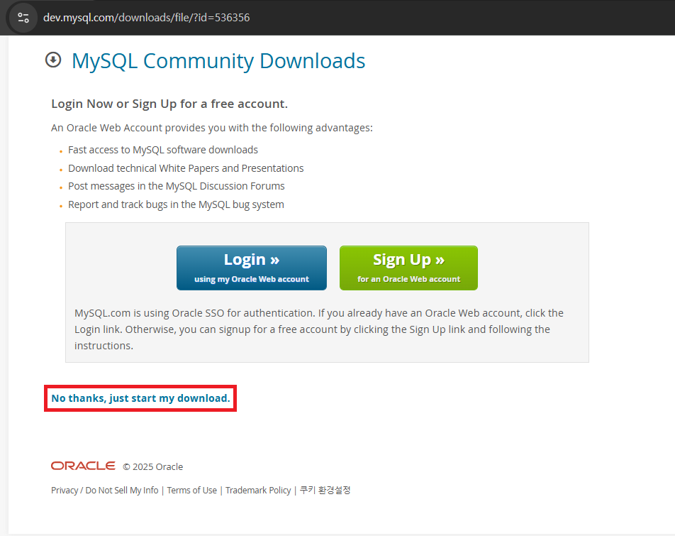 06. 「No thanks, just start my download」를 클릭