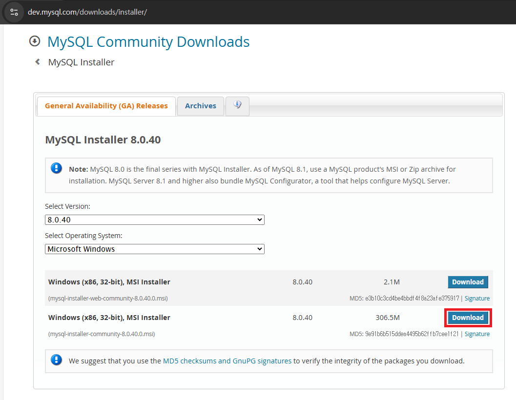 MySQL Server 8.0.40 - X64