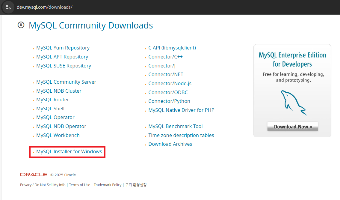 04. 필자의 운영체제는 Windows이므로, 「Mysql Installer for Windows」를 클릭