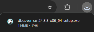 03. 다운로드가 완료되면, 우측 상단의 최근 다운로드 기록을 클릭하거나, 설치파일(exe)이 다운로드된 경로에서 파일을 실행