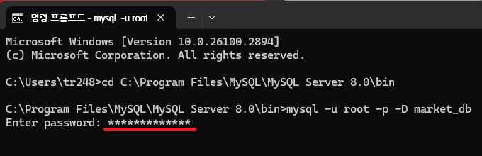 02. 이하 코맨드로 MySQL이 설치된 장소\bin으로 이동